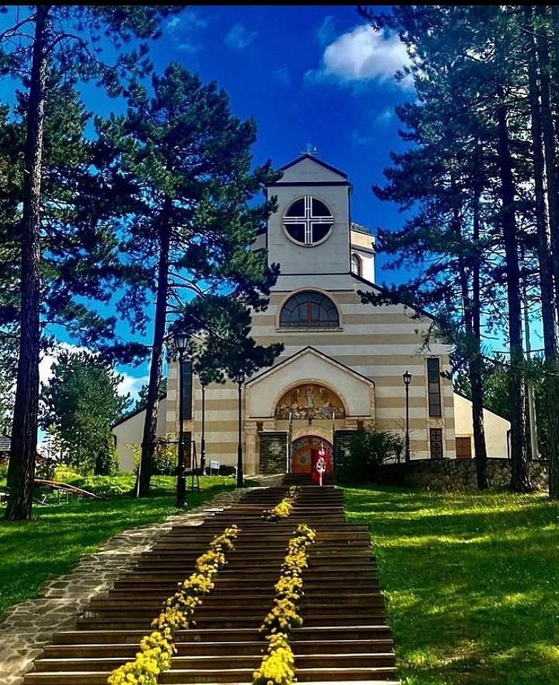 Архитектура и внешний вид Храм был построен как монументальное кирпичное здание в сербско-византийском стиле. Его легко узнать по гармоничному центральному куполу и возвышенной колокольне, а белоснежный фасад в сочетании с каменным фронтоном придает церкви величественный вид, идеально вписывающийся в горный ландшафт. Интерьер храма наполнен светом, здесь тщательно подобран деревянный иконостас и мраморный пол, а постепенно создаваемые фрески еще больше обогащают это священное пространство.