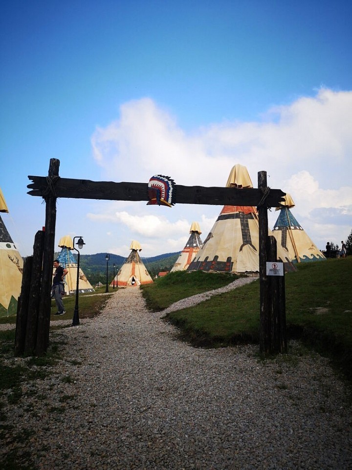 Здесь вы увидите копии ковбойского городка XIX века на Диком Западе, в центре которого расположен отель, а также почтовое отделение, тюрьму, банк, офис шерифа того периода… Вы почувствуете настоящую атмосферу Дикого Запада, а также настоящего Техаса, в той части, где установлены караваны; копии индейской деревни — а именно шесть индейских палаток, установленных вокруг костра, где вы почувствуете, будто из одной из палаток вот-вот выйдет настоящий индейский вождь, и деревушку Златибор с церковью, где представлены традиции этого региона с XIX века, с озером, где выращивают форель, и с бревенчатыми домиками, названными в честь известной сербской личности, изображение которой есть на одном из домиков.